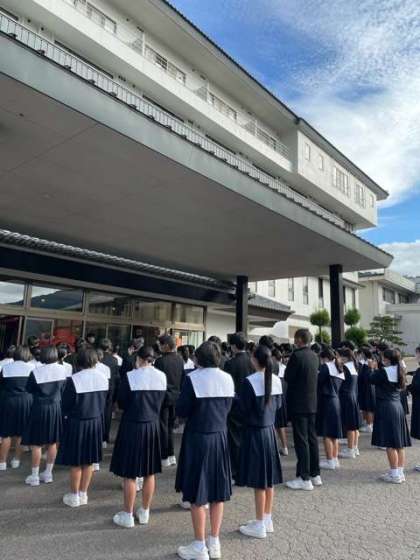 修学旅行もいよいよ最終日。お世話になったホテルの方々にお礼を伝えて出発しました。これから最後の活動場所となるナガシマスパーランドへ向かいます。