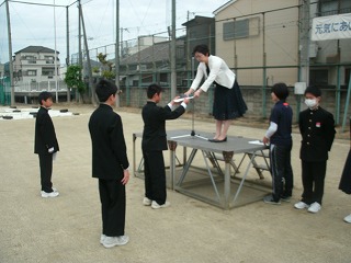 各学年の代表として、1組の男子学級委員長が校長先生から認証状をいただきました。