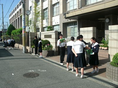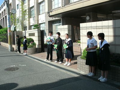5月15日(金)、昨日に引き続き、生徒会が、登校時に正門で「みどりの羽根募金」活動を行いました。たくさんの生徒が協力してくれました。ほんとうにありがとうございました。