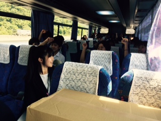 バスでは、モーニング娘の曲が流れるとみんなで歌いながらスタンツの踊りが始まりました。5月20日9:45
