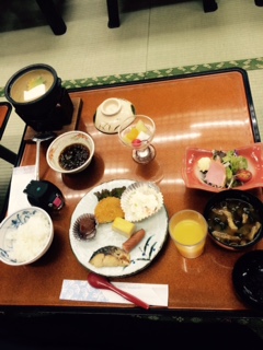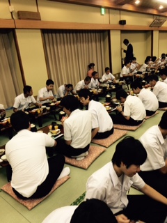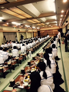 でも、一旦目覚めると朝からテンション高い生徒と低い生徒とはっきり分かれるようです。布団の片付け名人もいて、時間通りに準備が進むと朝食会場へ。