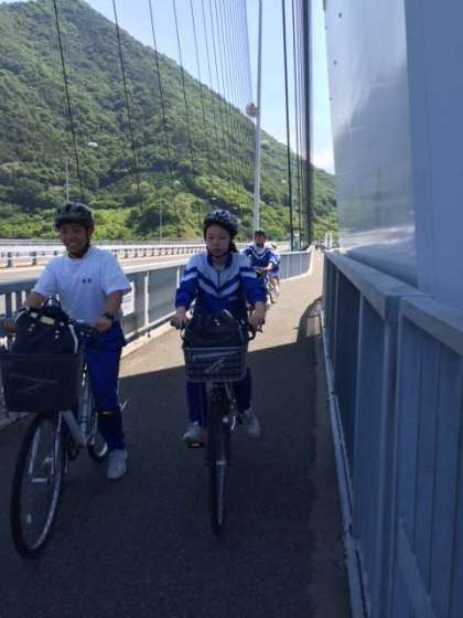 しまなみ海道のサイクリングです。潮風に吹かれて気持ち良さそうです。