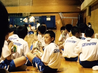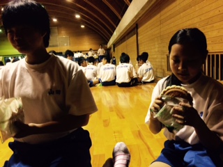 メロンパンとジュースを食事係さんが手伝って配ります。