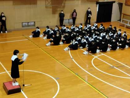 本日の6限は、「卒業生を送る会」を生徒会が中心となり行いました。。感染拡大防止のため、1年生・2年生から卒業生へ送る歌は、動画で卒業生に見てもらいました。後輩から先輩に送る言葉も、先輩から後輩に送る歌や言葉も心温まるメッセージでした。それぞれにとって、思い出に残る良い会だったと思います。
