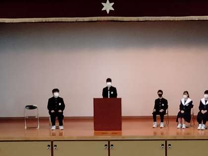 本日、4限目に生徒会役員選挙を実施しました。役員候補たちが、それぞれの思いを演説してくれました。写真は、生徒会長・副会長候補の演説の様子です。