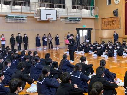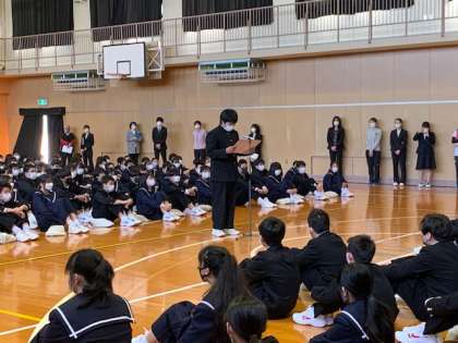 始業式に続き、対面式を行いました。新入生と在校生のそれぞれの代表が言葉をかけ合いました。