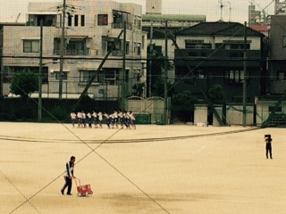 早朝から3年4組が学年種目の「ムカデ競争」の練習を頑張っています。「1・2・3・4・アルソック!」の掛け声が実に面白い。
