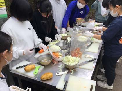 みんなが楽しみにしていた野外炊飯が始まりました各班手分けして美味しいカレーライス作りに取り組んでいます。