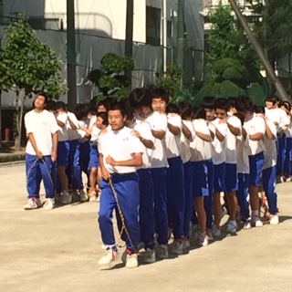 今日は声のボリュームを落として練習しています。足並みをそろえる難しさ、揃った時の喜び、近隣の方に迷惑をかけないことを学んでいます。