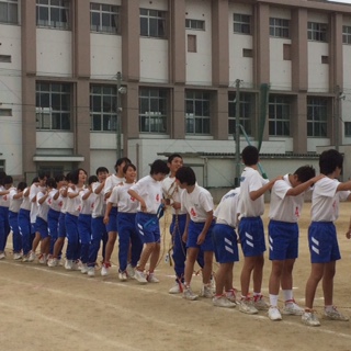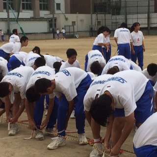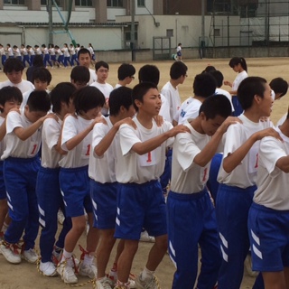 成南中学校伝統ある3年生種目です。女子から男子にタスキをつなぐタイミングも難しいです。