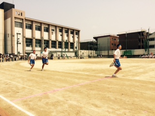 何度も走っている生徒もいて、精一杯走っています。応援にも熱が入ります。