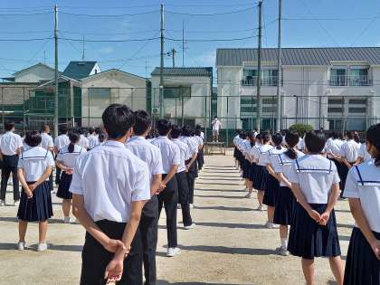 その後、生活指導について夏服への更衣のことと、登下校時の歩き方の話がありました。