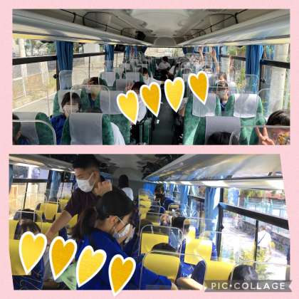 バスの中では班長さんが意気込みを言ってくれたり、ちょっとしたゲームをしているクラスもありました。