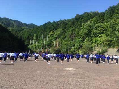 快晴の空の下でラジオ体操