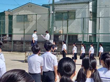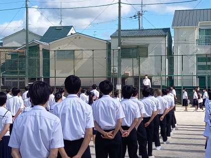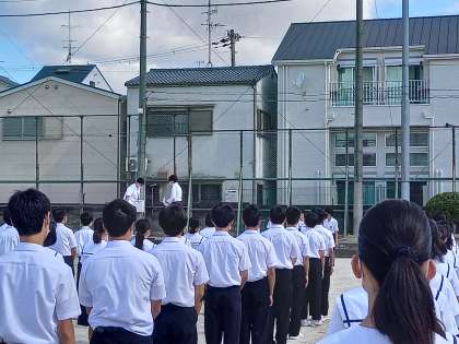 6月7日(火)、昨日の月曜日は雨で運動場の状態が悪かったので全校集会を今日に延期しました。