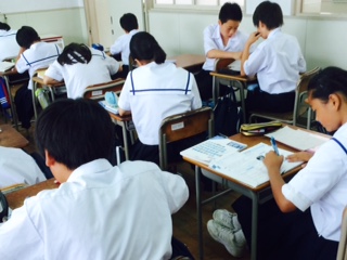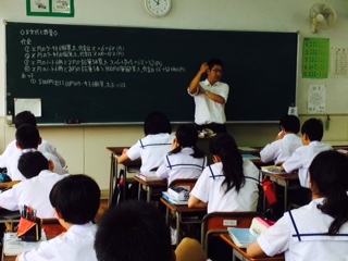 1年生の数字「文字の式」の授業です。「4割と40パーセントは一緒?」ということに初めて気づいた人もいました。教えあいもしています。基本の基本を学んでいます。家でしっかり復習しましょう。