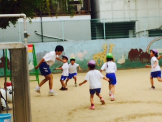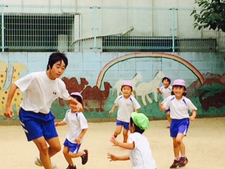 さすがに、保育園の先生はここまで走れないです。中学生パワー全開!
