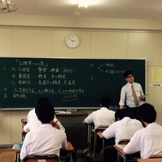 興国高校から先生が来られて、公務員試験をクイズ形式で出題!今から何を学べが良いか熱弁をふるっていただきました。クイズの答えに爆笑することも多々ありましたね。