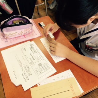 住吉商業高校から先生が来られて、小切手・領収書の作成や封筒の宛名書きをしました。ハンコをきちんと押すのもドキドキです。小切手も使えたらいいなあ〜