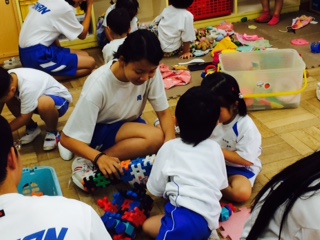 保育園の先生たちは、どのようなおもちゃだと、関わりが促進されるのか、色々考えて準備していただきました。さすがに保育は奥が深いですねえ。