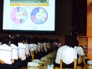 西成区の税理士さんに来ていただき 「税金なんて、いらない!」の叫びから始まるDVDを見せいていただきました。街が荒れて、お年寄りが働き口を探して街をさまよったり、消防車を呼ぶにもお金がかかってしまうという内容でした。その後で、40万の給料で生活をどのようにしているかのシュミレーションをし、わかりやすく、国の歳出と歳入のお話しをしていただきました。3年生もしっかり耳を傾けていました。良き社会人になってくださいね。