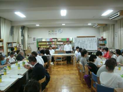 岸里地区、千本地区の地域関係諸団体の方々、そして学校・PTAの方々が本校に集まって、子どもたちの状況を交流しました。