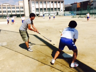 炎天下のもと、顧問のノックに食らいつくメンバーです。
