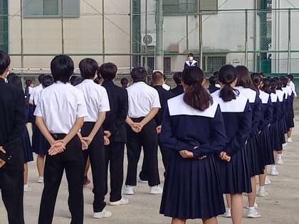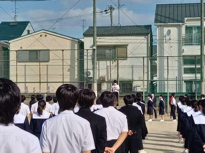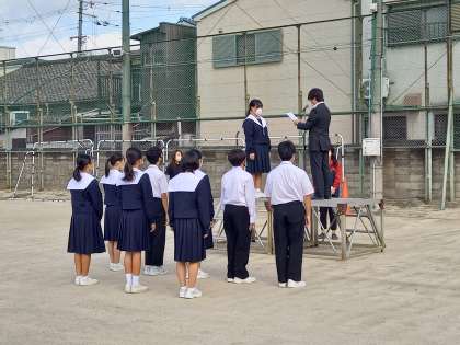 校長先生からは、「今週から一年の後半になります。14日の運動会では全員が頑張っていい形で前期の締めくくることができました。後半も気持ちを新たに頑張りましょう。」という話がありました。