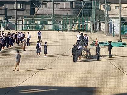 10月24日、温かい日差しの中、全校集会を持ちました。
