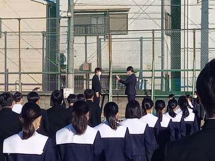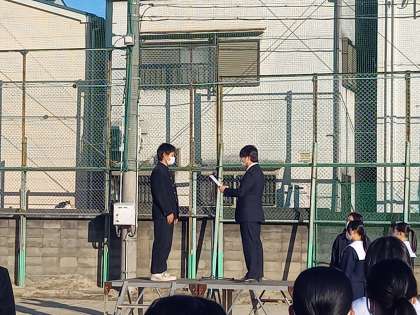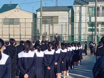 12月19日、冬らしい寒さの中、12月最後の全校集会を持ちました。
