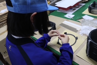 藤川金属工業株式会社では、製品にシールを張るお仕事や炊飯器の内蓋を組み立てる作業を体験させていただきました。