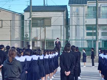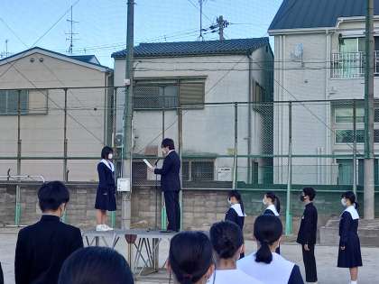 校長先生から、公立高校特別選抜のこと、高校入試での中学校での成績の扱い、1、2年生は学年末テストの1週間前になるので計画通り勉強すること、などについての話がありました。