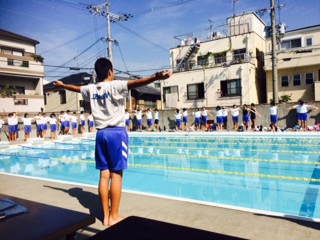 晴天の中、昨日の1年生に続いて3年生の水泳大会が始まりました。