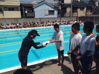 結果は 優勝2組 2位1組 3位4組 4位3組でした。中学校最後の水泳大会を楽しめた3年生です。
