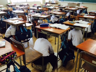 校舎一斉に椅子が動く音が響き、シーンと静けさがやってきました。実際に起きた時のために普段から自分のいのち、人の命を守れる力をつけたいと思います。