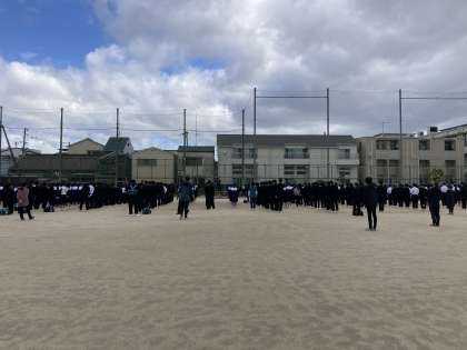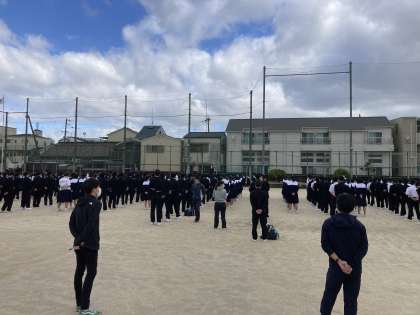 5月8日、昨夜の雨の影響が心配されましたが、成南中の運動場は問題なく、全校集会を持ちました。