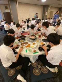 さまざまな料理を部屋班のメンバーで囲み、美味しくいただきました。
