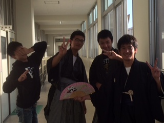 笑顔が溢れる3年生です。先生も生徒も一緒になって、青春を楽しんでいるかのようです。袴もカッコいいですよ。