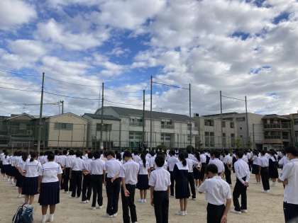 10月10日(火)秋らしい雲の下、全校集会を持ちました。