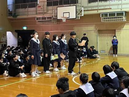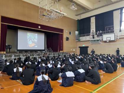 3年間の思い出が詰まった卒業記念ムービーをみんなで視聴し、3年生の合唱を聞きました。