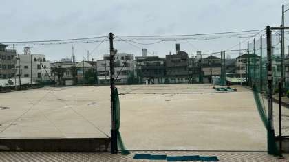 今日は雨模様で、グラウンドには所々に水たまりが…。