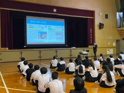 5月1日(金)6限、体育館で進路学習を行いました。進路指導主事の先生から「高校のいろいろな学科の特徴」や「これからの勉強の心構え」などについてのお話がありました。