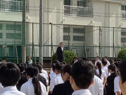 校長先生からは「中間テストに向けて計画的に学習できていますか。部活動で日々の練習の成果を本番で発揮するのと同様、テストでも学習の成果を結果として現れることを期待しています。テストの時だけでなく普段の学習の頑張りも大切ですが、そのためには生活リズムを整えることが必要です。起きる時間や寝る時間、勉強する時間がバラバラだとリズムがくるいます。家の人に言われるのではなく自分でコントロールできれば、学習もしっかりできると思います。今日くらいいいかなという気持ちは、リズムがくずれ、体調もくずします。ぜひ意識して生活リズムを整えてください。」というお話がありました。
