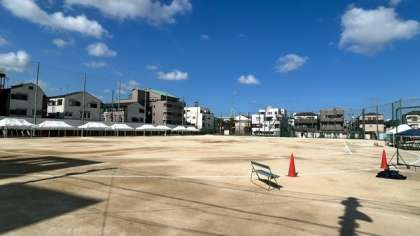 朝早くからたくさんの生徒が準備をしてくれています。晴天の下予定通りに行えそうで何よりですが、暑くなりそうなのが少し心配ですかね・・・(;^_^A