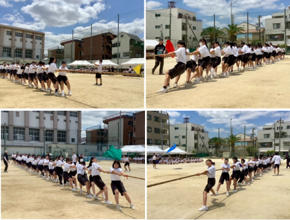本日の体育大会の予行では、女子の団対抗の競技である綱引きの予選が行われました。