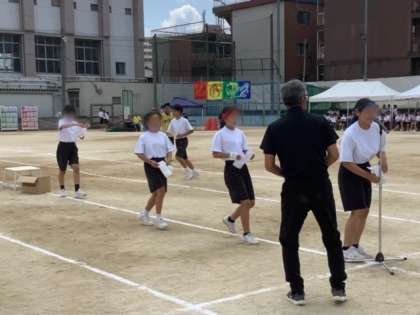 借り物ではありません。借り「人」です。なぜか校長先生が何度も借り人に指名されて走ってくれました♪