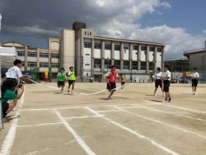 男子は一人トラック1周を4人で走りました。どの学年も白熱したレースとなりました。