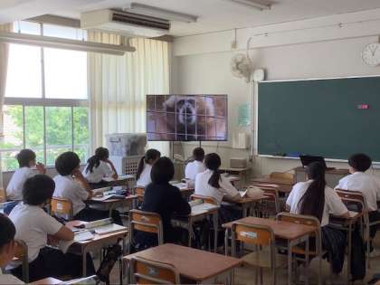 ほんらい、動物園や水族館に行って動物を直接観察・調査をできればよいのですが、ある動物園が制作した動画を見て、動物の体のつくりと生活のしかたの関係についてみんなで考えました。動画では、テナガザルやワライカワセミも登場しましたが、その鳴き声のモノマネをみんなの前で披露してくれる人もいました♪