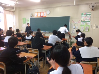 立ち上がった時に座っていた椅子がひっくりかえって、クラスみんなで爆笑していました。廊下に出て「ペコリ」。いい雰囲気ですねえ。