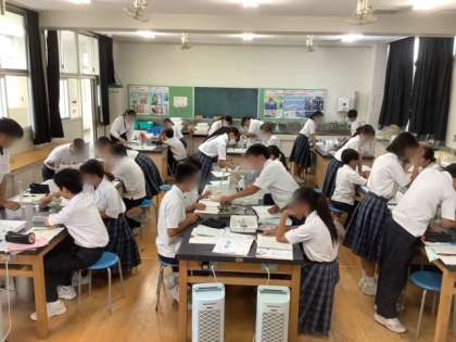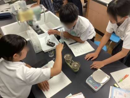 1年の理科の授業で、3つの物質の密度を手掛かりにして、それぞれの物質が何かを突き止める実験をしました。